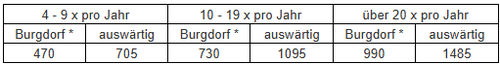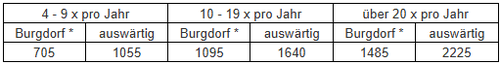Einmalige Benützung in CHF