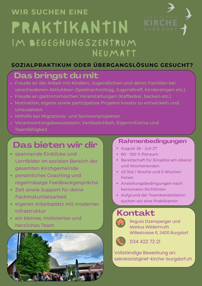 Wir suchen eine Praktikantin im Begegnungszentrum Neumatt